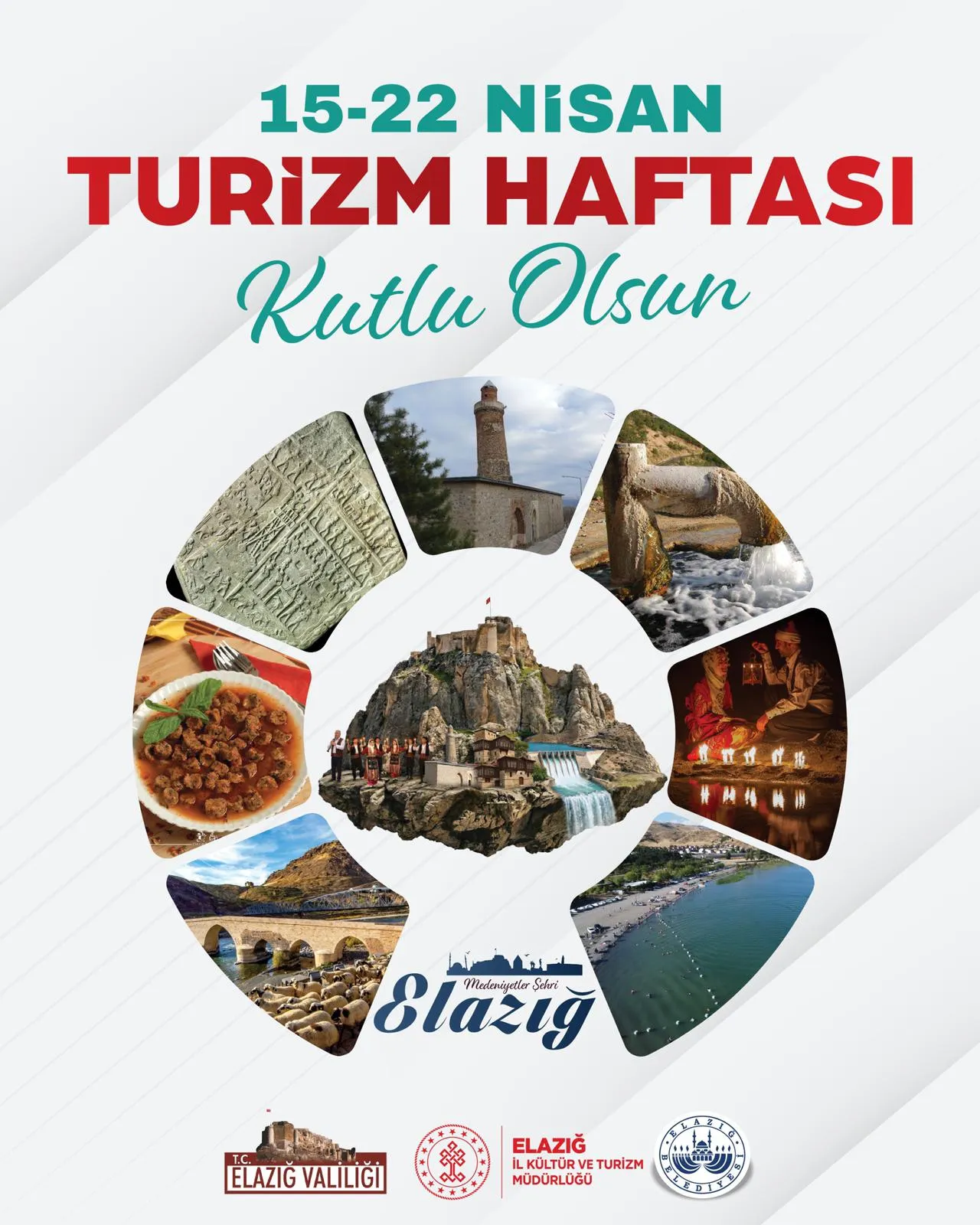 Turizmi, Sevgi ve Hoşgörü Besler. Temizlik Turizmin, Turizm kalkınmanın anahtarıdır. Turizm hizmetle büyüyen, sevgiyle gelişen ağaçtır. Ülkenin saygınlığı, Turizm'in yaygınlığı ile artar. Tarihin yaşadığı, mavinin gülümsediği yer ELAZIĞ...