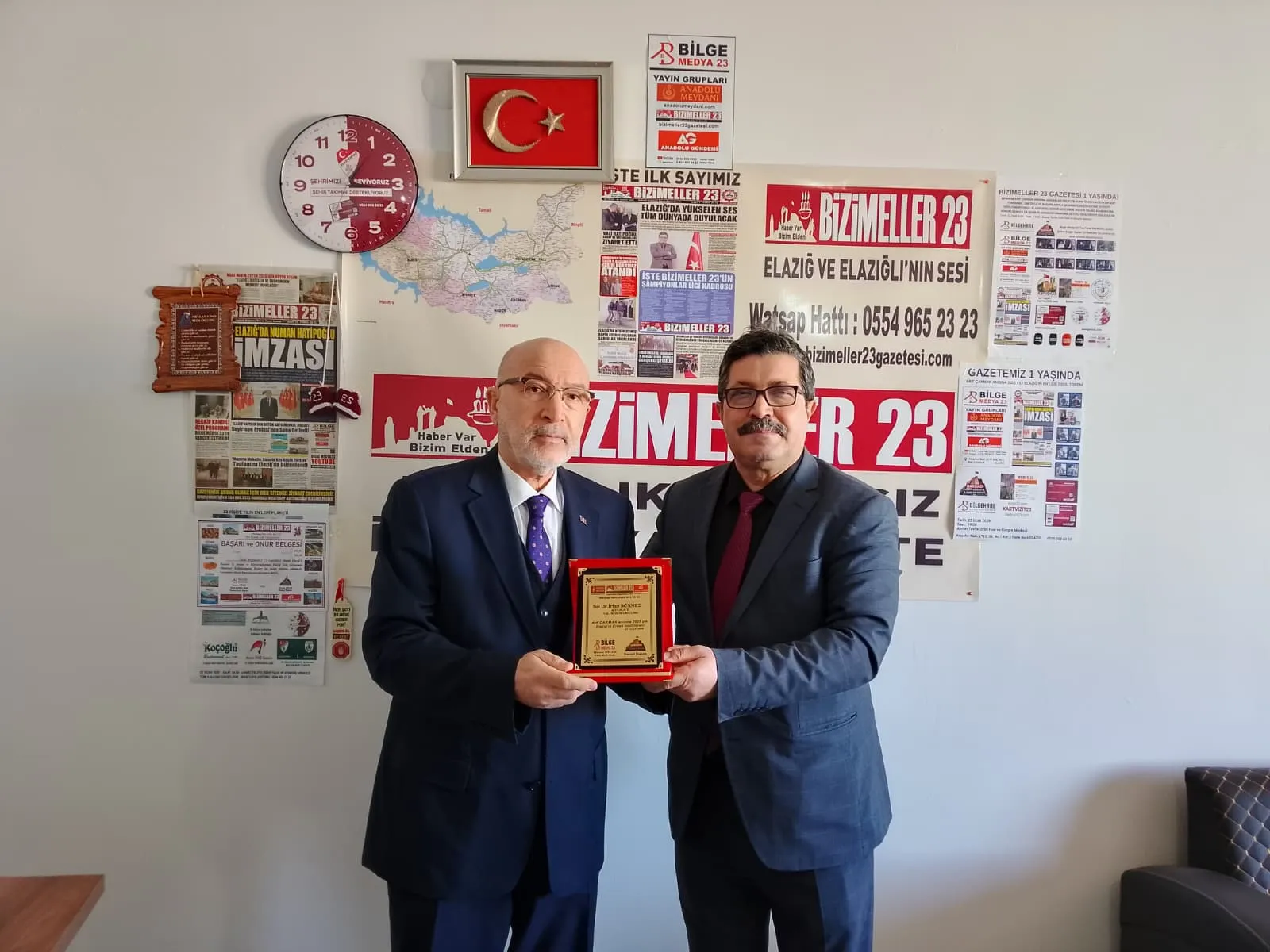 Ödül gecemiz de plaketini alamayan sayın SÖNMEZ medyamıza gelerek hem konuğumuz olarak değerli görüşlerini bizlerle paylaştı hem de plaketini kendisine takdim ettik .Ülkemiz ve Elazığ'ımız için tecrübeleriyle ışık olan Av. İrfan SÖNMEZ' e teşekkür ediyoruz.Kendilerini bundan sonra ki siyasi ve araştırmacı- yazarlık konusunda gösterdiği başarılardan dolayı tebrik ederiz