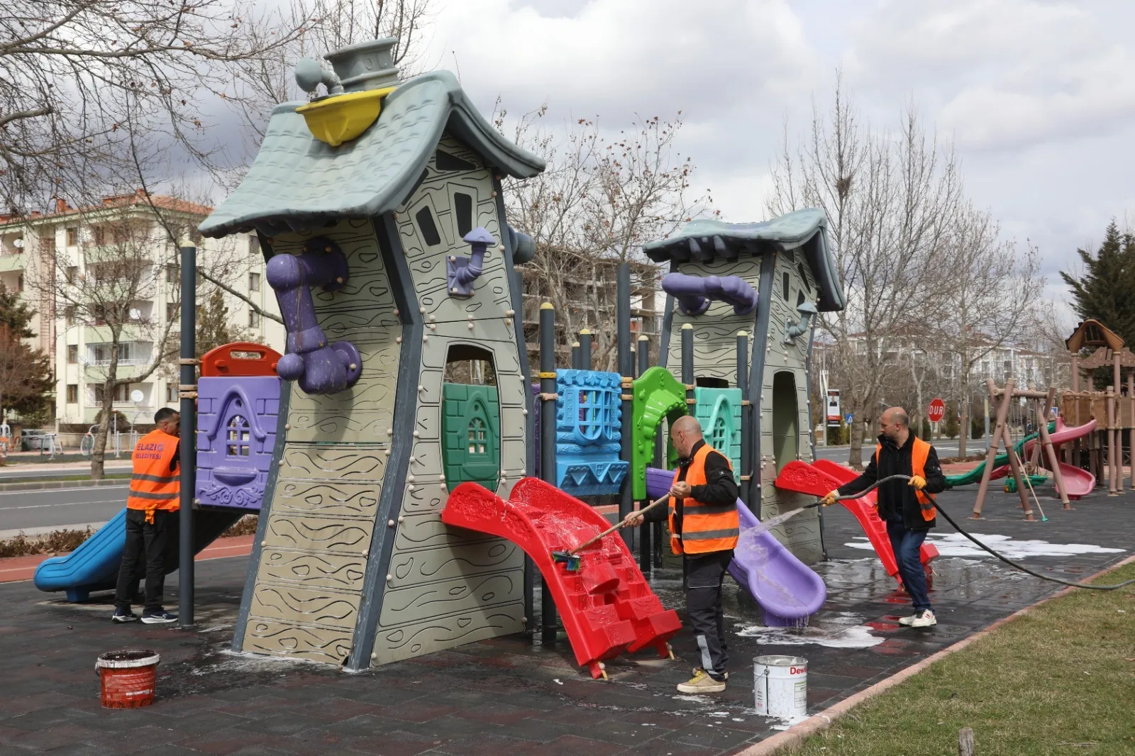 Elazığ Belediyesi, baharın gelişiyle birlikte çocuk oyun alanlarında kapsamlı temizlik ve bakım çalışmaları gerçekleştiriyor.