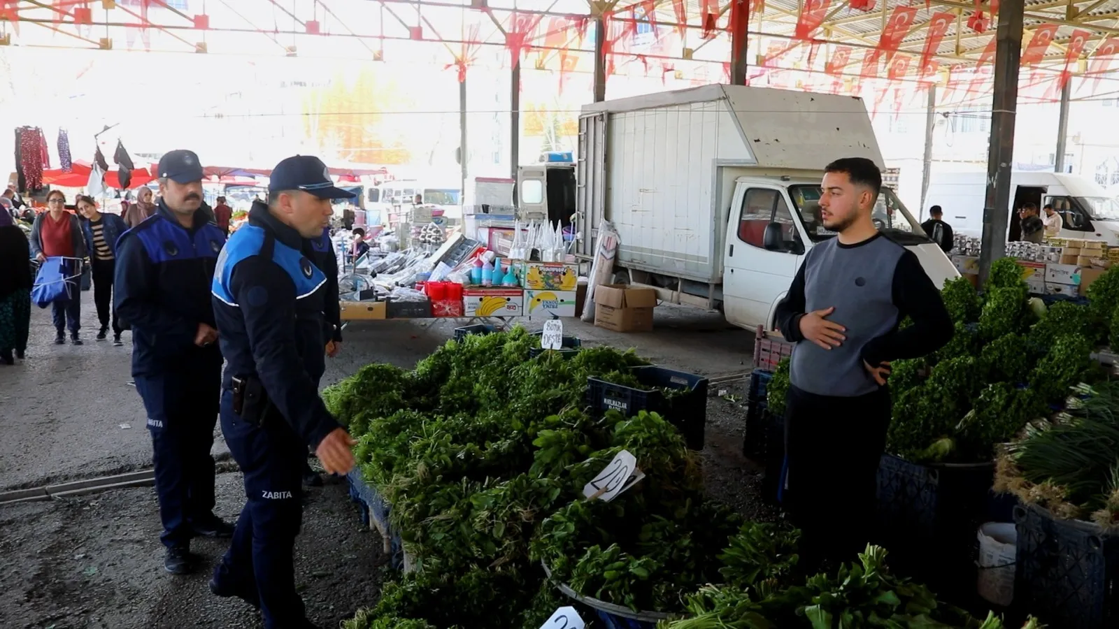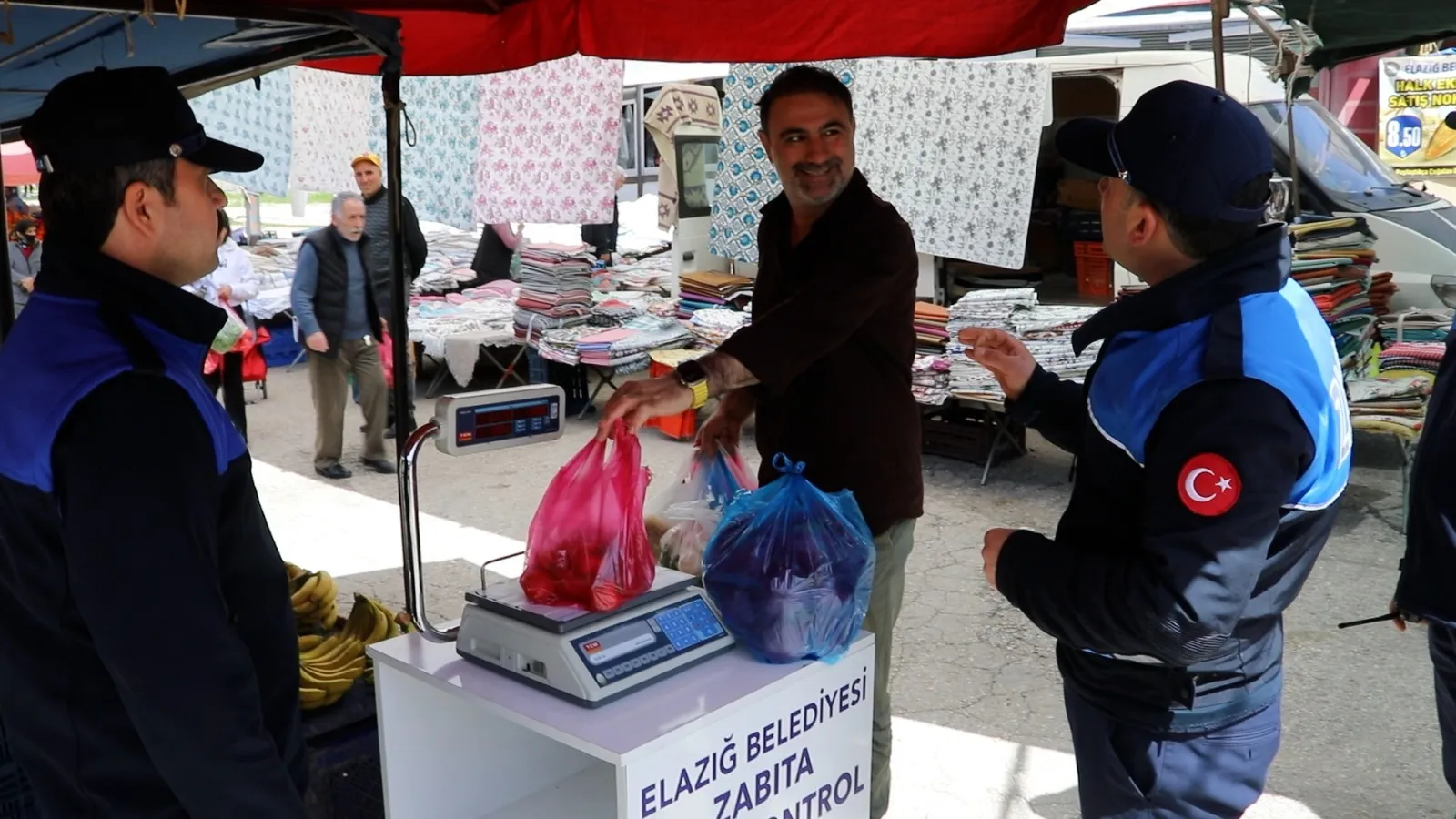 Elazığ Belediyesi Zabıta Müdürlüğü ekipleri, vatandaşların güvenli ve sağlıklı alışveriş yapabilmeleri için semt pazarlarında düzenli denetimlerini sürdürüyor.