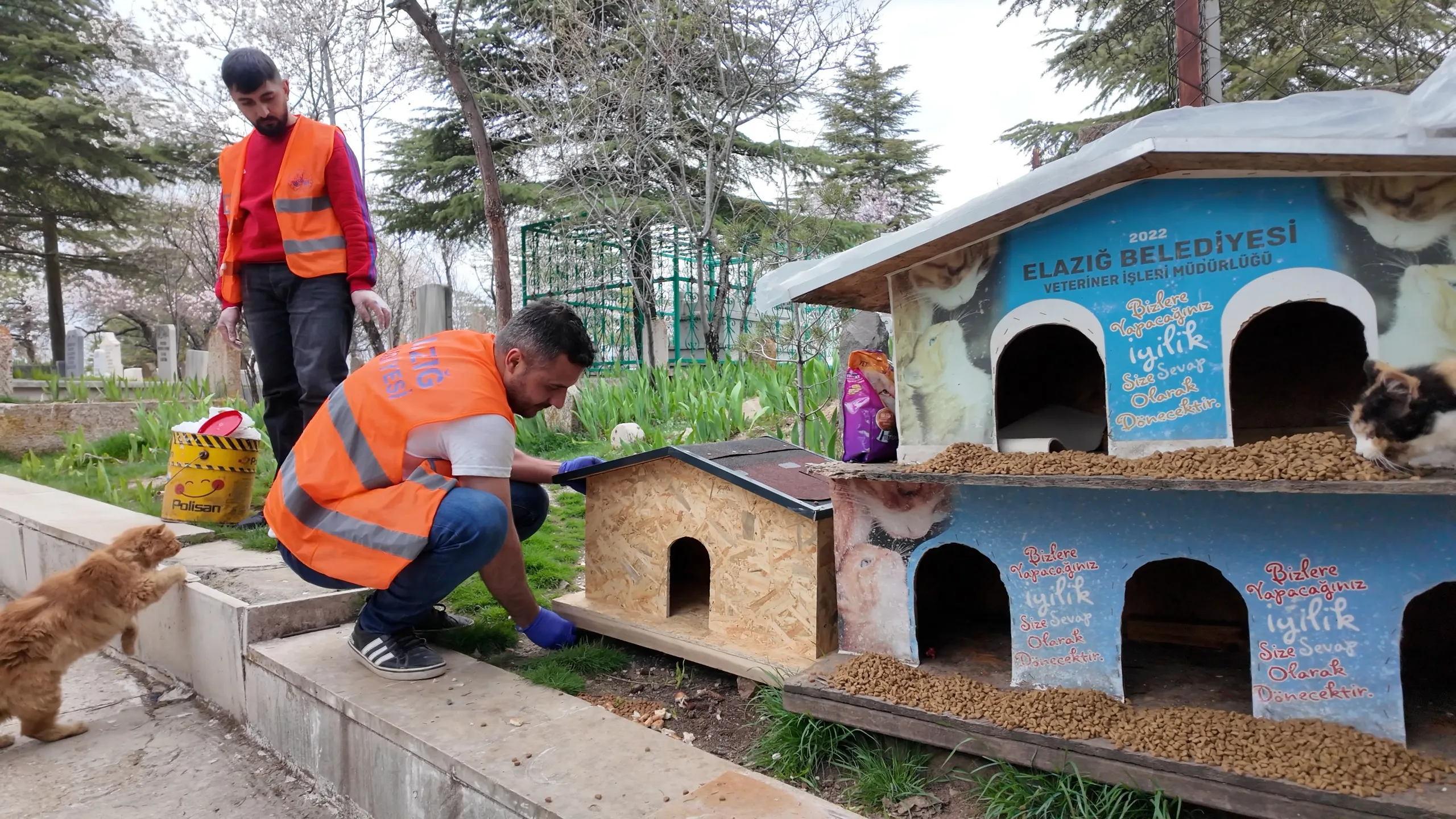 Elazığ Belediyesi tarafından yiyecek bulmakta zorlanan sokak hayvanları için kentin 90 farklı noktasına düzenli olarak mama ve yem bırakılıyor.