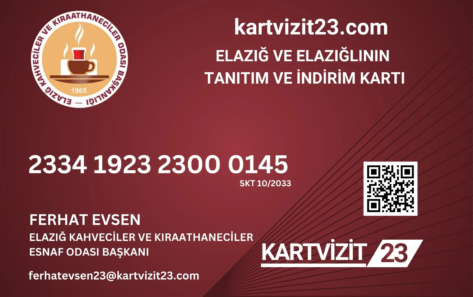 Her Elazığ'lı da olması gereken Kartvizit 23 kart avantajlarından faydanlamak için evet dedi Kahveciler ve Kıraathaneciler oda Başkanı Ferhat Başkan'da.