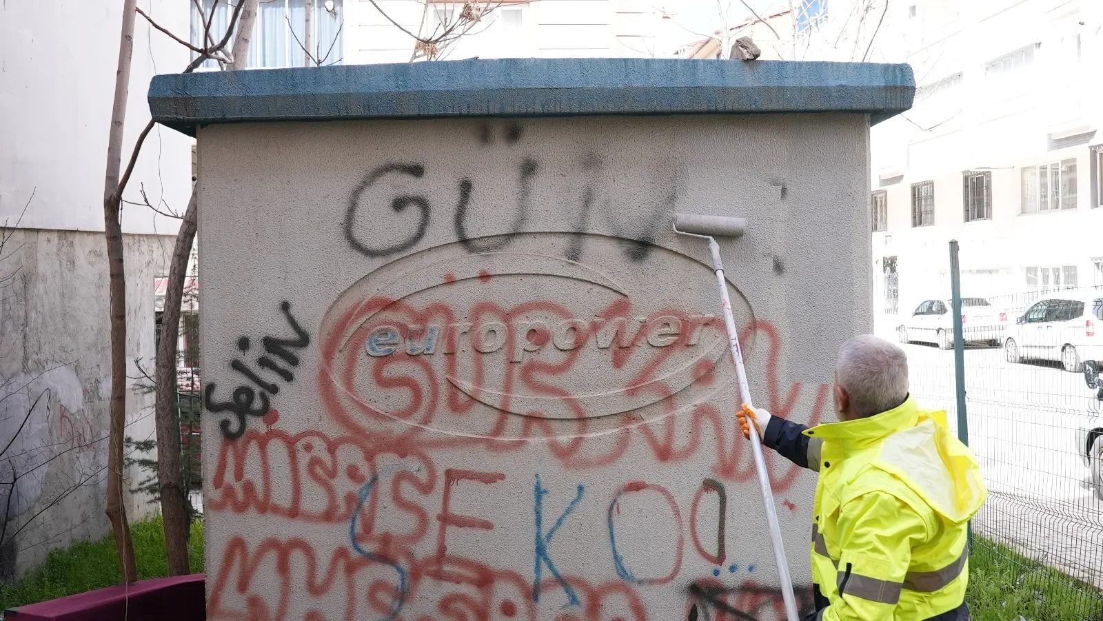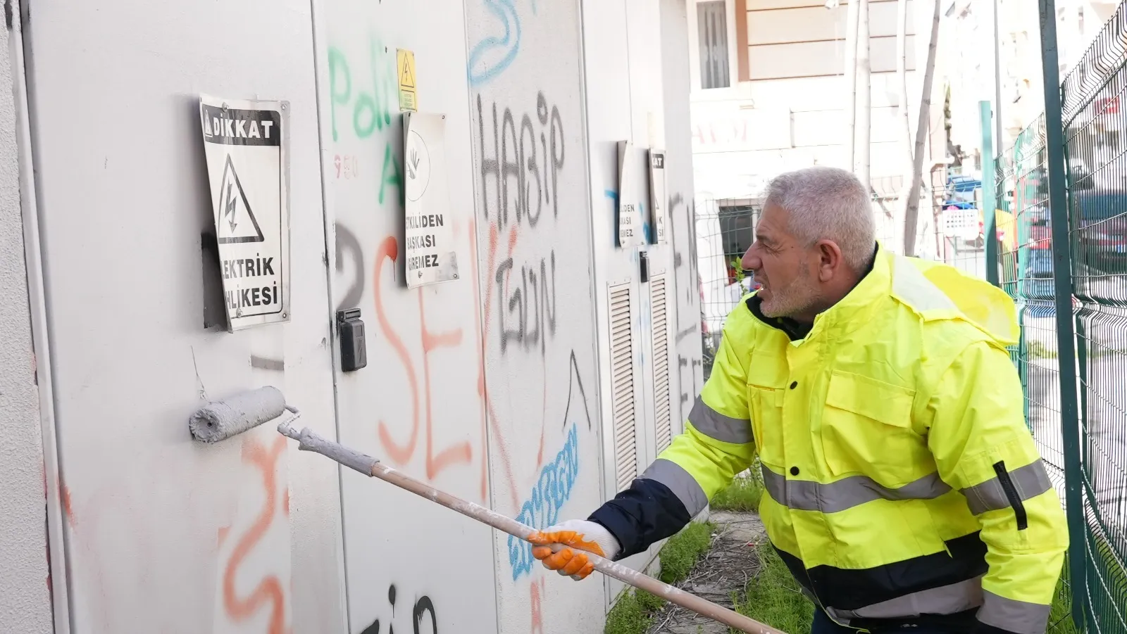 Bu kapsamda şehrin doğu ve batı kısımlarında yer alan park alanları, yaşam alanları, kamuya ait alanlar ve elektrik trafolarında ekipler, kent estetiğini bozan uygunsuz yazıların silinmesi için iki boya aracıyla sahada çalışma gerçekleştiriyor.