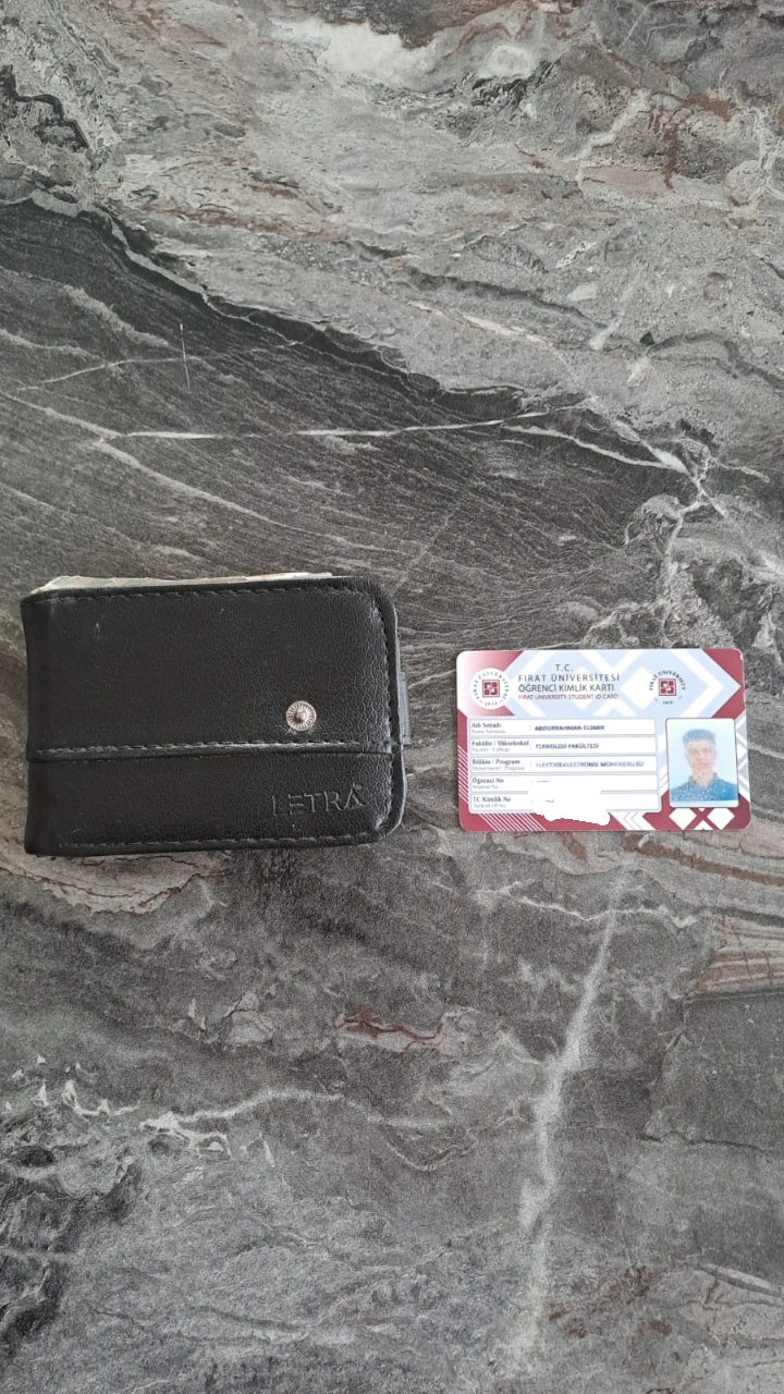 Elazığ’ın Olgunlar Mahallesi’nde Zeki Elcim tarafından yerde bir cüzdan bulundu. Cüzdanın içerisinde bulunan Fırat Üniversitesi öğrenci kimliği sayesinde sahibine ulaşmak için hızlıca harekete geçildi.