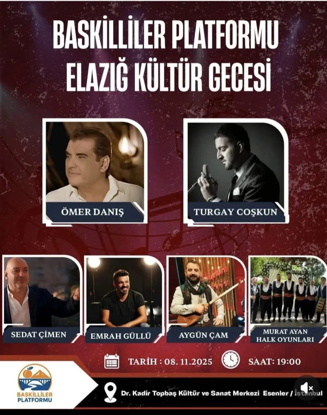 İstanbulda Elazig günleri ve gecesi Kasım ayında düzenleniyor.Elazigli sanatçıların katılacağı gün ve baskil gecesine tüm elazigli hemşehrilerimiz davet edildi.konser ve festival olacak günler anadolu yakası ve Avrupa yakasında düzenleniyor.org sahipleri festival ve geceye ilgi beklediklerimi söylediler.
